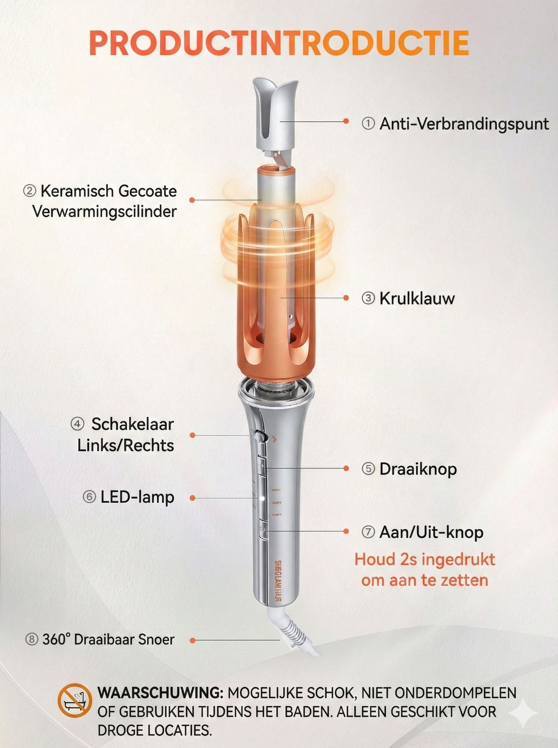Veiligheid: Anti-verbranding, anti-klit ontwerp, automatische uitschakeling