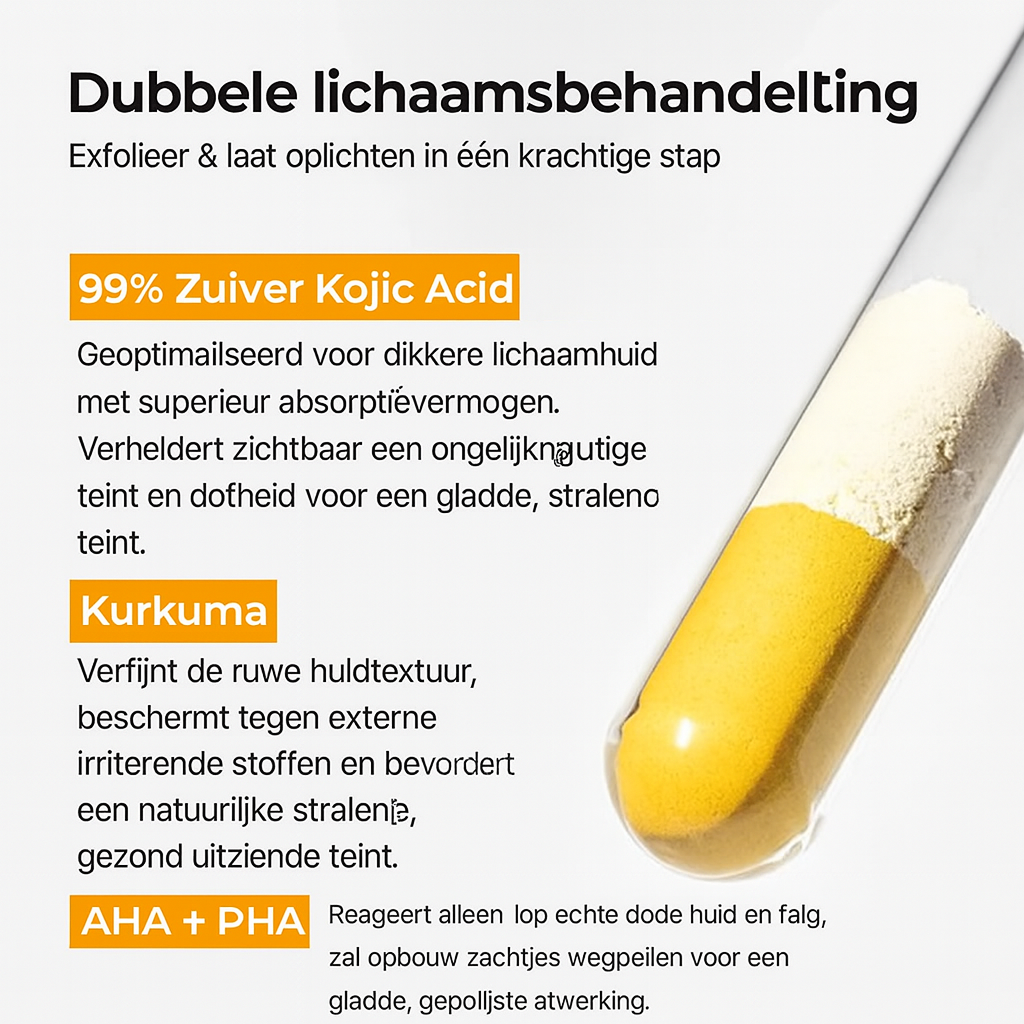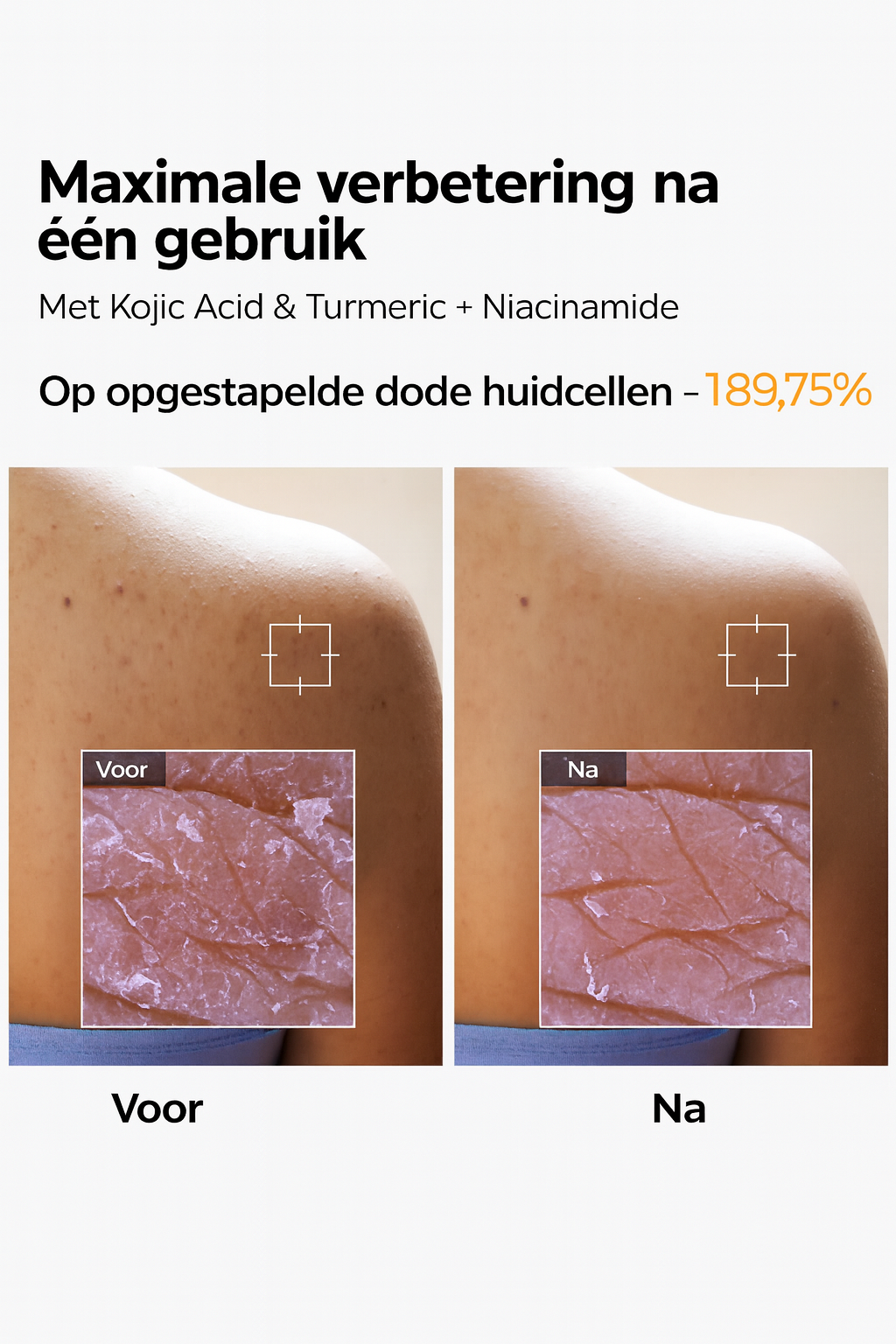 Dankzij de combinatie van Kojic Acid, Kurkuma en Niacinamide wordt je huid niet alleen vernieuwd, maar ook zichtbaar helderder en egaler.
