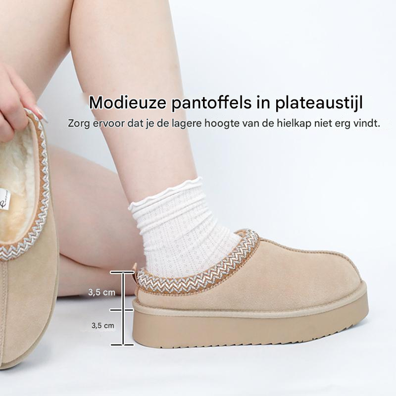 Stap in een wereld van zachtheid, warmte en moeiteloze stijl. Deze gevoerde instappers combineren het beste van twee werelden: het comfort van sloffen en de look van trendy schoenen. Met hun zachte suède-look, warme binnenvoering en moderne plateauzool zijn ze perfect voor relaxte dagen thuis én casual momenten buitenshuis.