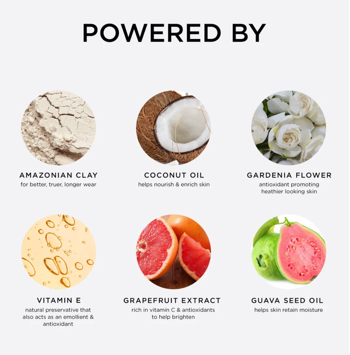 Onze SkinMelting Glow Formula wordt versterkt door huidliefhebbende ingrediënten zoals Amazonian Clay voor langdurige hold, voedende kokosolie en beschermende antioxidanten uit gardenia, grapefruit en vitamine E. Samen zorgen ze voor een gladde, stralende finish die je huid er frisser, zachter en gezonder uit laat zien, elke keer dat je glówt.
